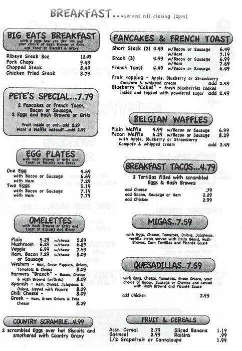 Pete S Cafe Menu Menu For Pete S Cafe Farmers Branch Farmers Branch