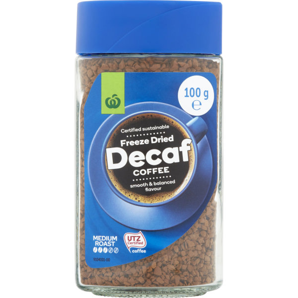 THE ORGANIC COFFEE CO. Jacobs Krnung Decaf Instant Coffee 100 g. Woolworths Select Colombian Gold Decaffeinated has the same smooth rich flavour as Select Colombian Gold Classic with the caffeine removed.